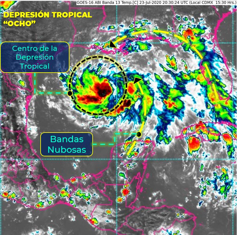 En cuanto a la depresión tropical ocho, que ayer estaba a 385 kilómetros al este de Matamoros con vientos sostenidos de 55 kilómetros por hora, se encuentra desplazándose hacia el oeste; el fin de semana impactaría en la costa de Texas, Estados Unidos con categoría de tormenta tropical a la que le correspondería el nombre de Hanna, sino se forma otro sistema en el Atlántico. Este sistema entraría a territorio nacional como una baja presión remanente causando lluvias en la frontera norte del país, por lo que no existe riesgo para Quintana Roo.