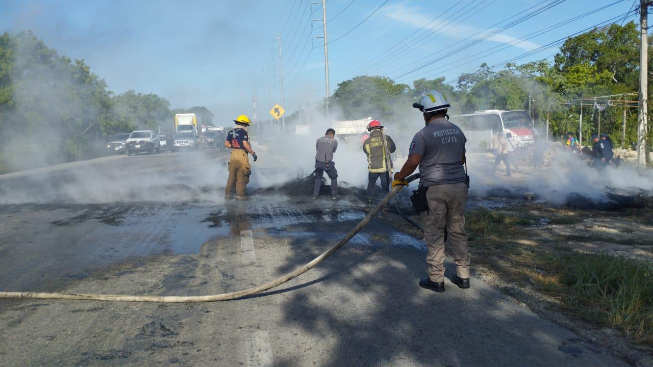 Los inconformes bloquearon la carretera federal 307 en dirección de Tulum a Felipe Carrillo Puerto, incendiando llantas como forma de protesta. De acuerdo con versiones de los afectados, en la acción participaron presuntos grupos de choque, quienes no solo actuaron con violencia, sino que también habrían robado pertenencias durante el frustrado desalojo.