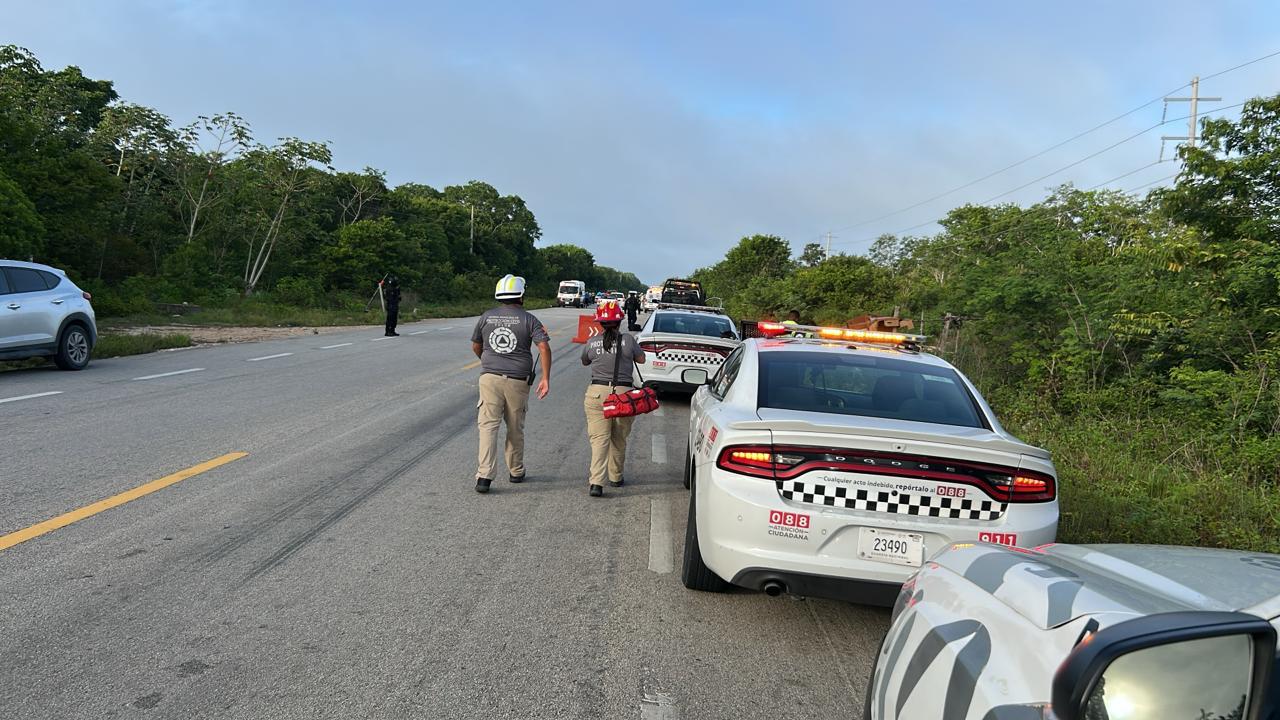 Un trágico accidente cobró la vida de tres personas, dos infantes y un adulto, y dejó un saldo de al menos nueve lesionados; fue un choque frontal ocurrido la mañana de este miércoles sobre la carretera federal 307, tramo Tulum-Felipe Carrillo Puerto, a la altura del kilómetro 268. Según los primeros reportes, el conductor de un vehículo compacto, presuntamente tras quedarse dormido al volante, invadió el carril contrario e impactó de frente contra una van de transporte de pasajeros perteneciente a la Unión Nacional de Transportistas del Cambio (Untrac), con sede en Felipe Carrillo Puerto. El brutal impacto provocó que ambos vehículos quedaran severamente dañados, obligando la intervención inmediata de los cuerpos de emergencia. Paramédicos de la Cruz Roja, RUM Medical, Hospital Tulum y Costamed se desplazaron rápidamente al lugar para atender a los heridos. Se confirmó que al menos seis de los lesionados fueron estabilizados en el sitio antes de ser trasladados a hospitales de la región para recibir atención especializada. Elementos de la Policía de Caminos de la Secretaría de Seguridad Ciudadana y de la Guardia Nacional acudieron al lugar para acordonar el área y controlar el tránsito vehicular, que permaneció parcialmente cerrado durante varias horas mientras se realizaban las diligencias correspondientes y el levantamiento de los cuerpos. Autoridades ya se encuentran investigando los hechos para deslindar responsabilidades, aunque de manera preliminar se apunta al conductor del automóvil compacto como presunto responsable del siniestro. Edición: Ana Ordaz