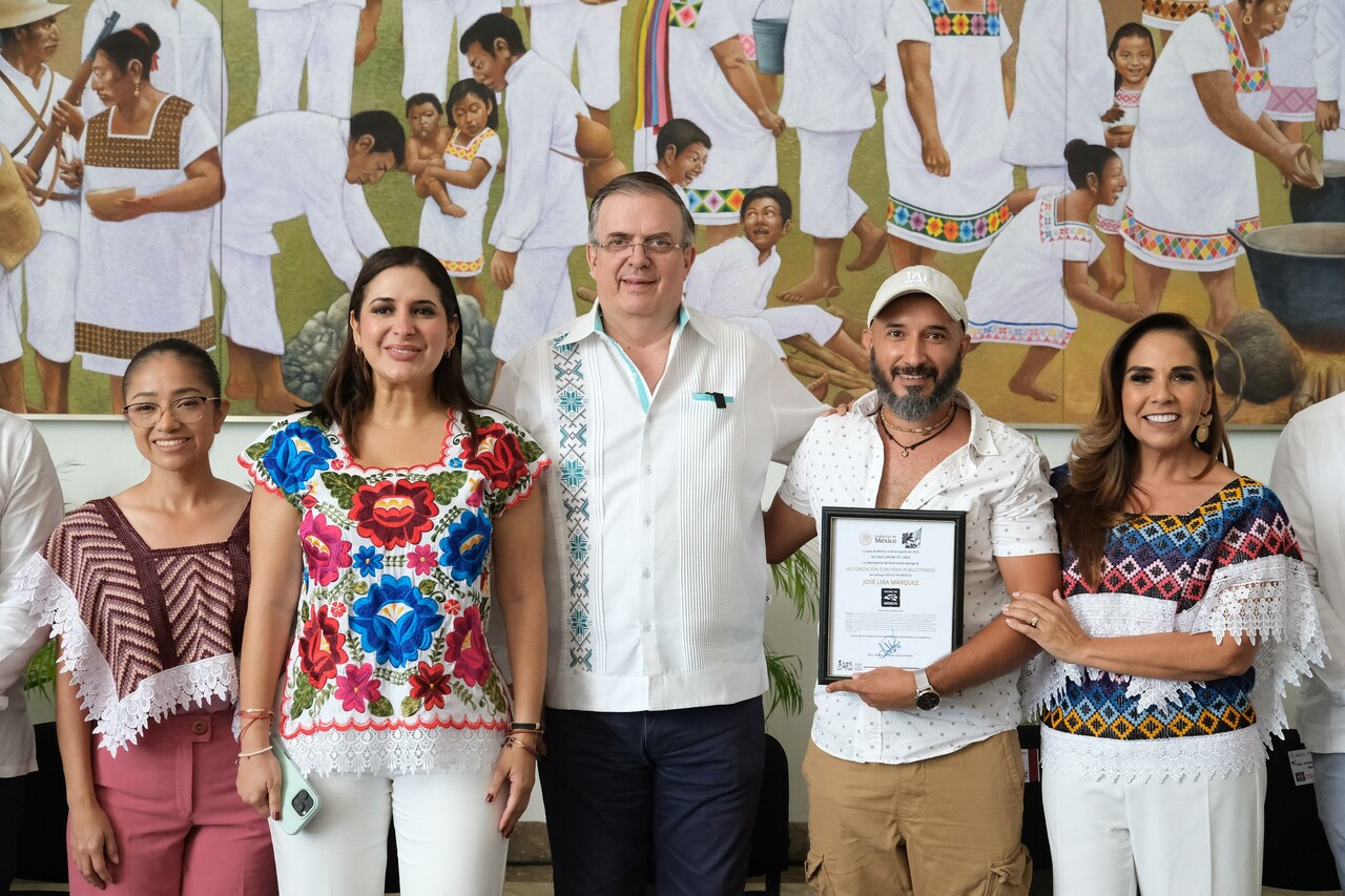 Empresarios y productores locales recibieron 14 certificados Hecho en México, que representan el reconocimiento oficial a la calidad, identidad y potencial exportador de los productos locales, de manos de la gobernadora de Quintana Roo, Mara Lezama Espinosa, y del secretario de Economía, Marcelo Ebrard Casaubón, quien realizó este miércoles una gira por el estado.