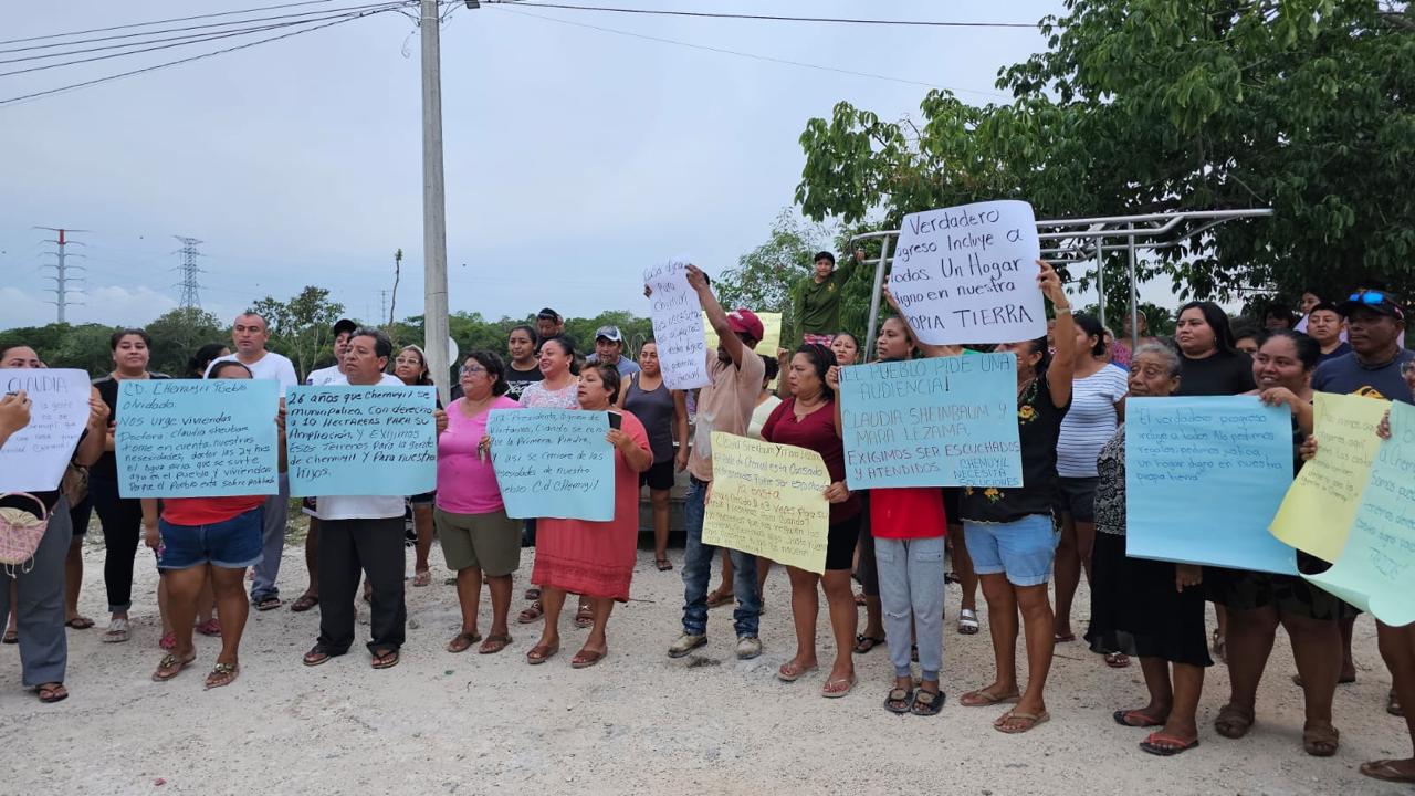 “Muchas familias de Chemuyil siguen rentando o viviendo en una casa con varias familias. Mi hijo nació aquí, ya creció, va a tener un hijo… y no es justo que no tenga una casa digna”, expresó uno de los vecinos durante la manifestación pacífica.