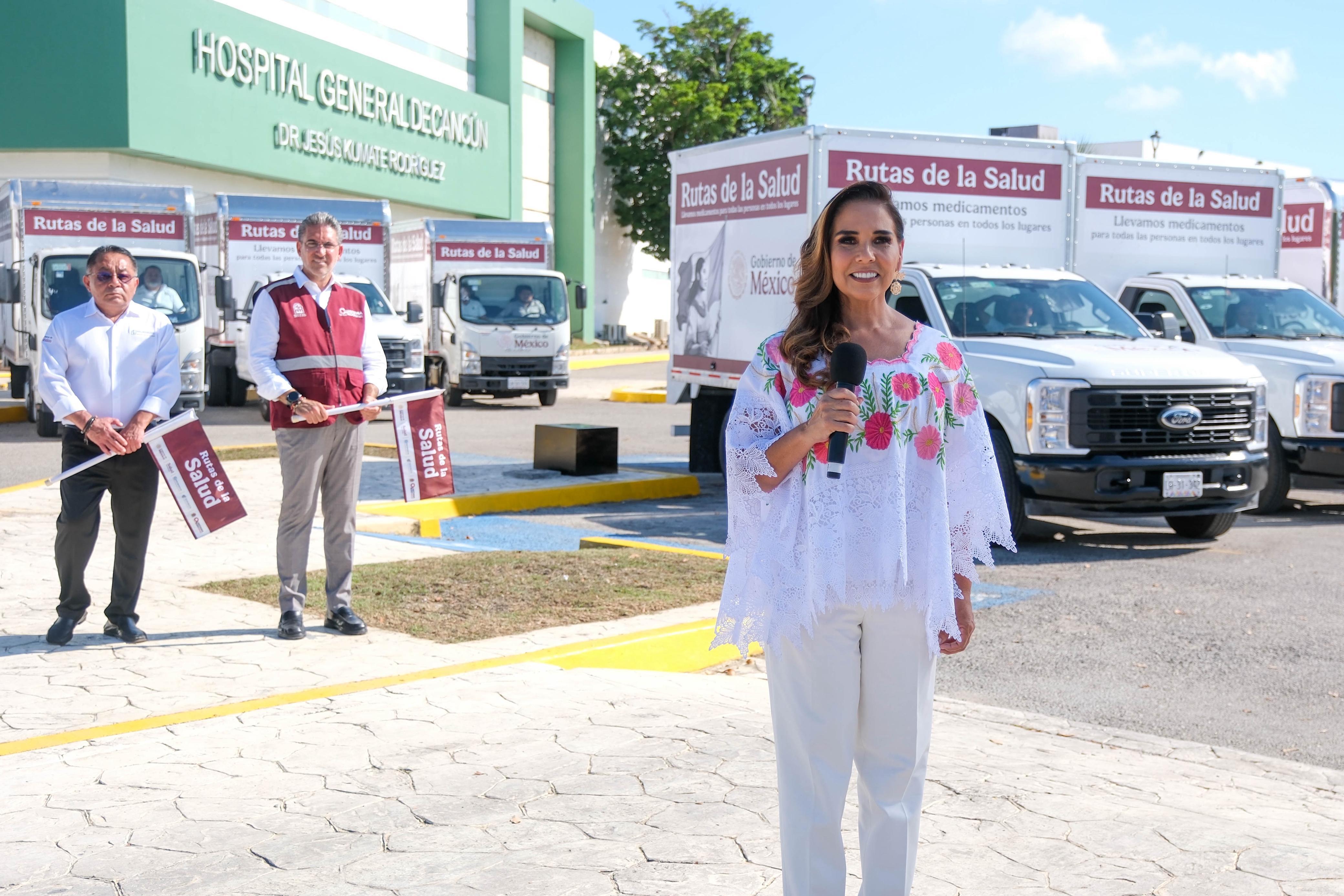 En lo que fue el banderazo inicial del programa Rutas de la Salud, que repartirá del 19 al 23 de agosto más de 15 millones de medicamentos en todo el país, la gobernadora de Quintana Roo, Mara Lezama, dio a conocer que en la entidad se llevarán más de un millón de medicinas a los 13 hospitales estatales.