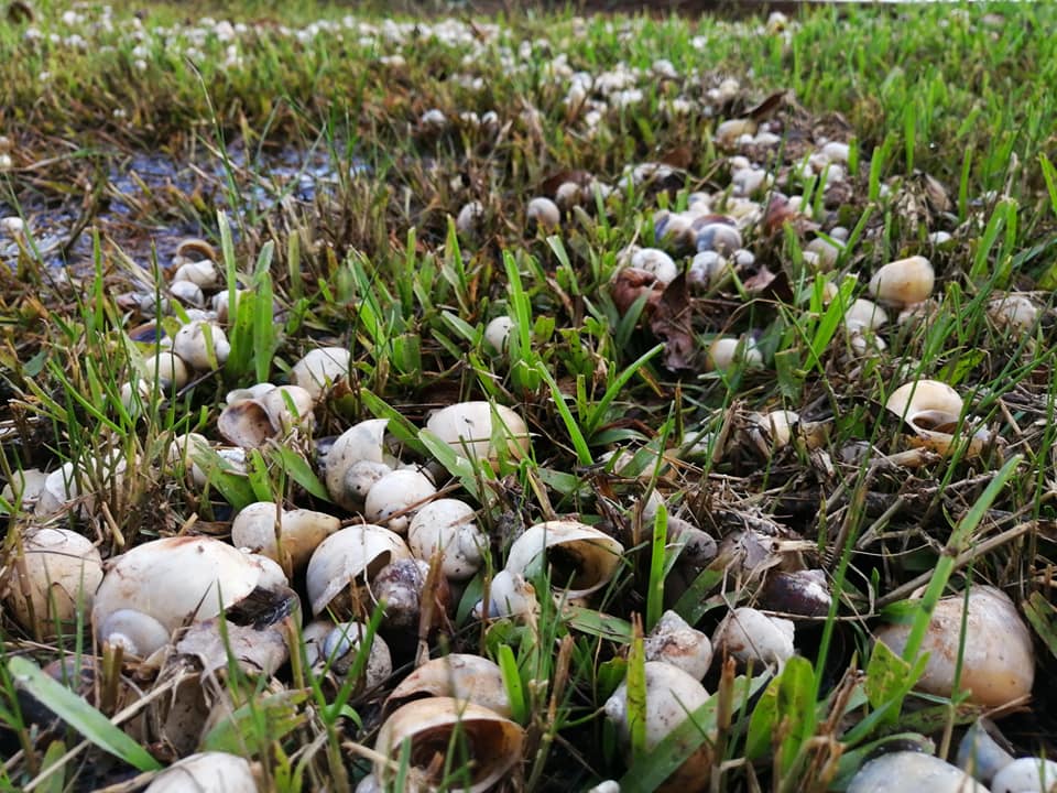 “Habitan en el lodo de la orilla, salen del agua a dejar sus masas de huevo en ramas, vegetación, paredes y los muelles; se pueden ver pegados unos huevitos de caracol, que son como bolas blancas que esperan nacer y caer al agua”, mencionaron.