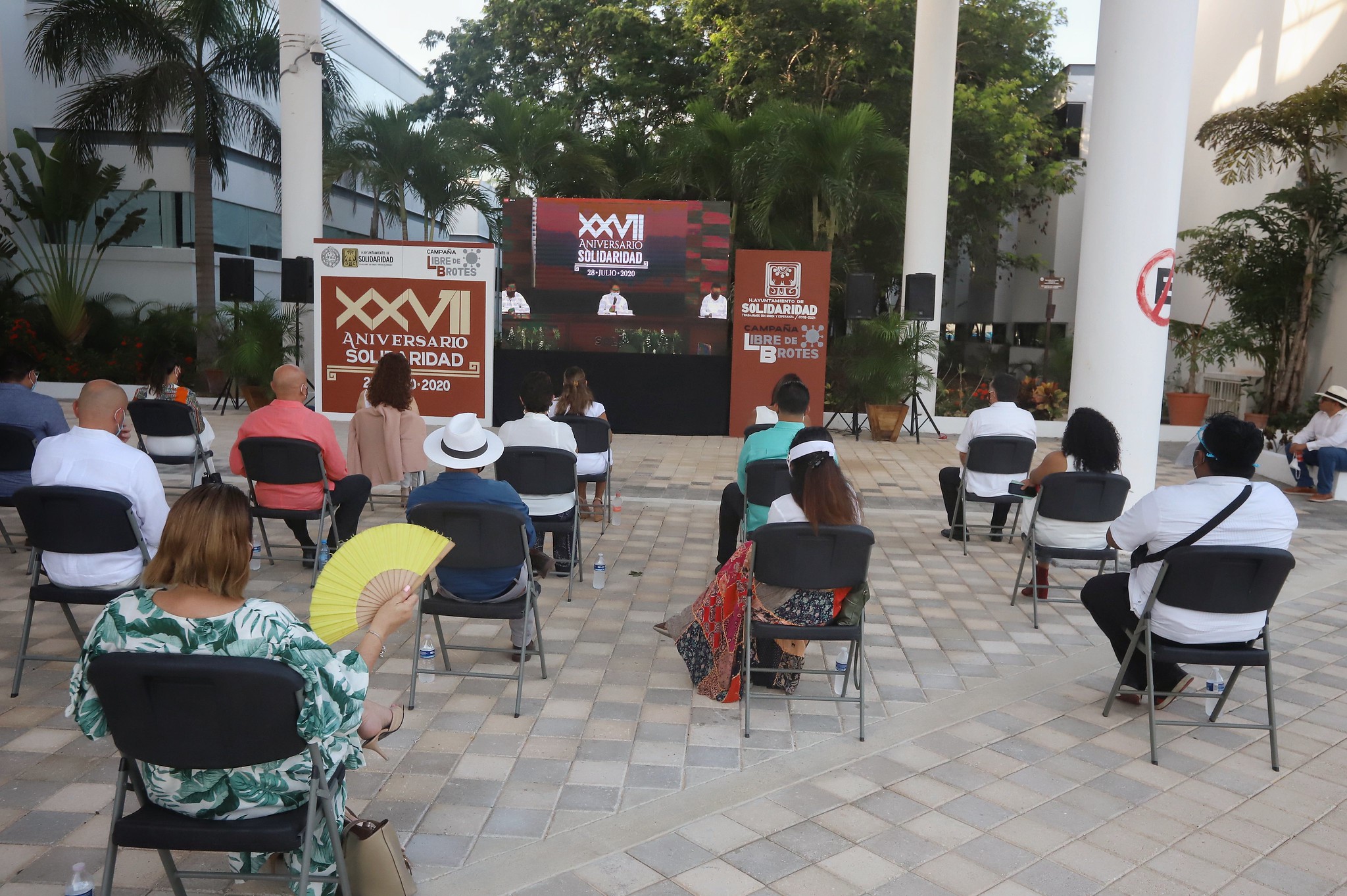 A la sesión solemne asistieron Carlos Ríos Castellanos, secretario de Desarrollo Urbano y Sustentable en representación del gobernador Carlos Joaquín González y la diputada Fernanda Trejo Quijano a nombre de la Legislatura local. Todos los presentes portaron cubrebocas.