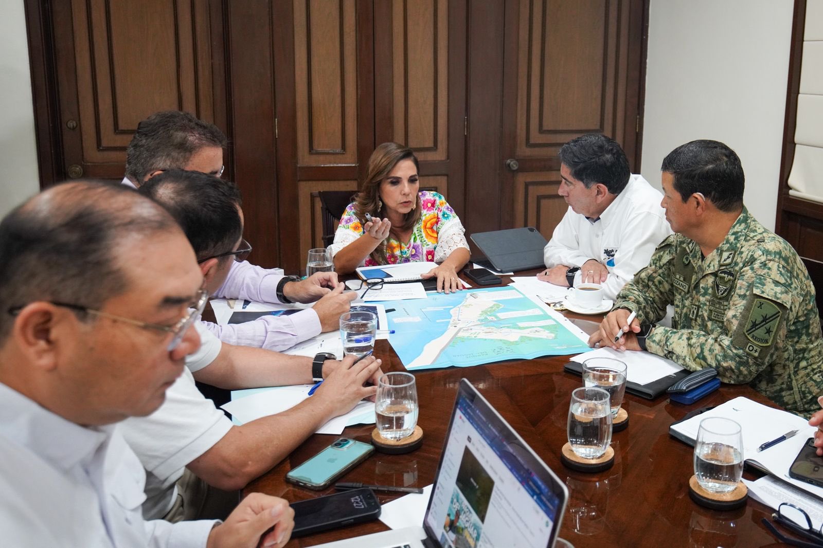 La gobernadora Mara Lezama y el presidente municipal de Tulum, Diego Castañón, sostuvieron una reunión con el general Adolfo Héctor Tonatiuh Velasco, director del Grupo Mundo Maya, y su equipo de trabajo, la cual la mandataria calificó de “muy productiva”.