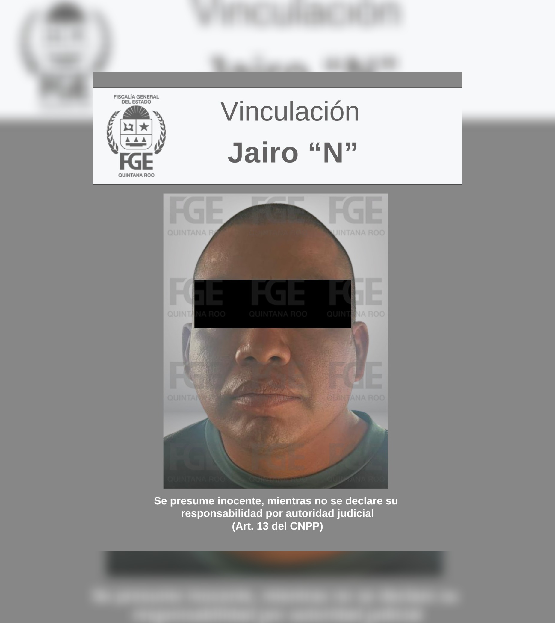 La Fiscalía General del Estado (FGE) de Quintana Roo informó que, tras presentar los datos de prueba suficientes, un juez de control dictó auto de vinculación a proceso en contra de Jairo N. por su probable participación en hechos posiblemente constitutivos de los delitos de abusos sexuales, privación de la libertad y lesiones, en agravio de una niña de nueve años de edad, de identidad reservada.