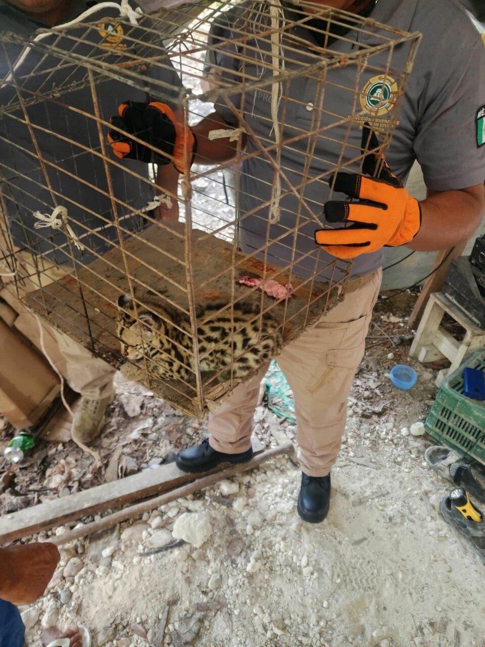 En respuesta a un reporte ciudadano emitido a través del 911, la Dirección de Sustentabilidad Ambiental en coordinación con la Dirección de Protección Civil y la Dirección de Bomberos en apoyo a la Procuraduría Federal de Protección al Ambiente (Profepa) logró el rescate de una cría de tigrillo en la comunidad de Chemuyil.