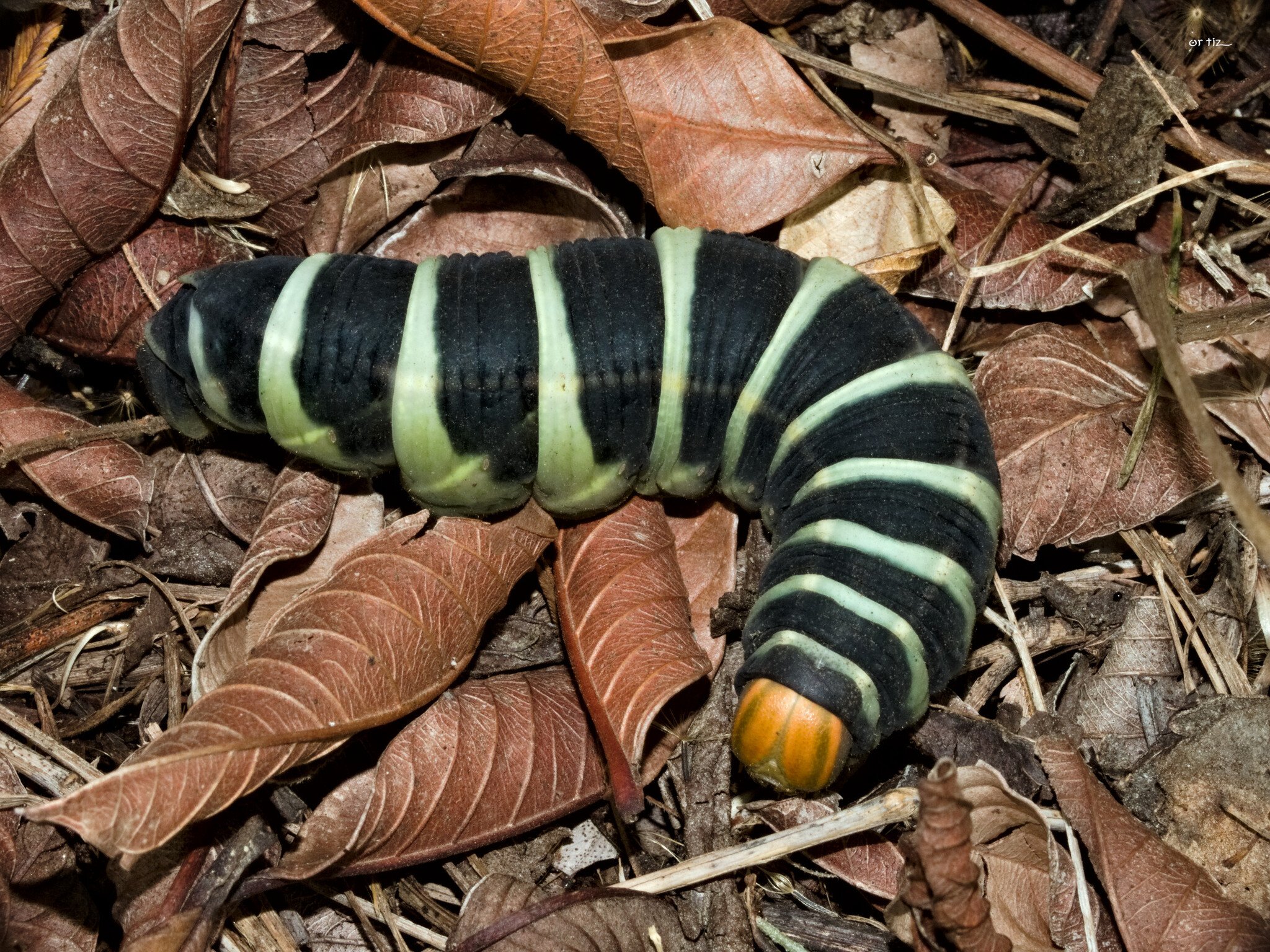 Esta especie de la familia Sphingidae inicia como intimidante larva de gran tamaño, muy llamativa en su color, ya que es verde y puede pasar desapercibida de sus depredadores en el follaje de las plantas. De acuerdo con los expertos es muy activa por las noches y durante el día se camuflajea para evitar ser alimento de pájaros.