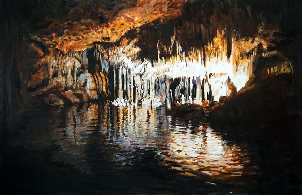 El artista brindó una videoconferencia para el Gran Acuífero Maya en la que mostró ejemplos de su trabajo: representa el ambiente que generan los sitios arqueológicos y las excavaciones: “Lo que me gusta es este juego de tiempos entre el momento que estás pintando un objeto que está saliendo a la luz después de siglos y al mismo tiempo es un hito en la arqueología”.