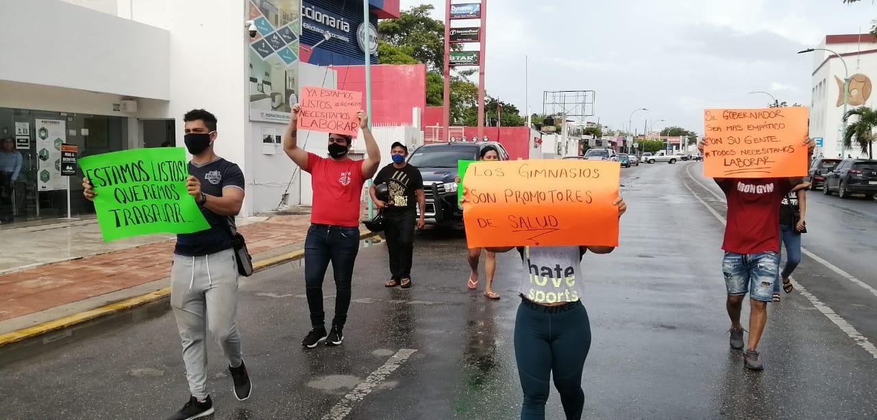 Dispuestos a reducir su horario de funcionamiento, tener menor aforo y seguir las indicaciones de salubridad, alrededor de un centenar de propietarios y trabajadores de gimnasios de la capital del estado, y representantes de Cancún y Playa del Carmen, marcharon hasta las instalaciones de la Secretaría de Salud (Sesa) para pedir a la Comisión Federal para la Protección Contra Riesgos Sanitarios (Cofepris) una reclasificación que permita a este tipo de establecimientos operar en tono anaranjado tras cinco meses con las puertas cerradas.