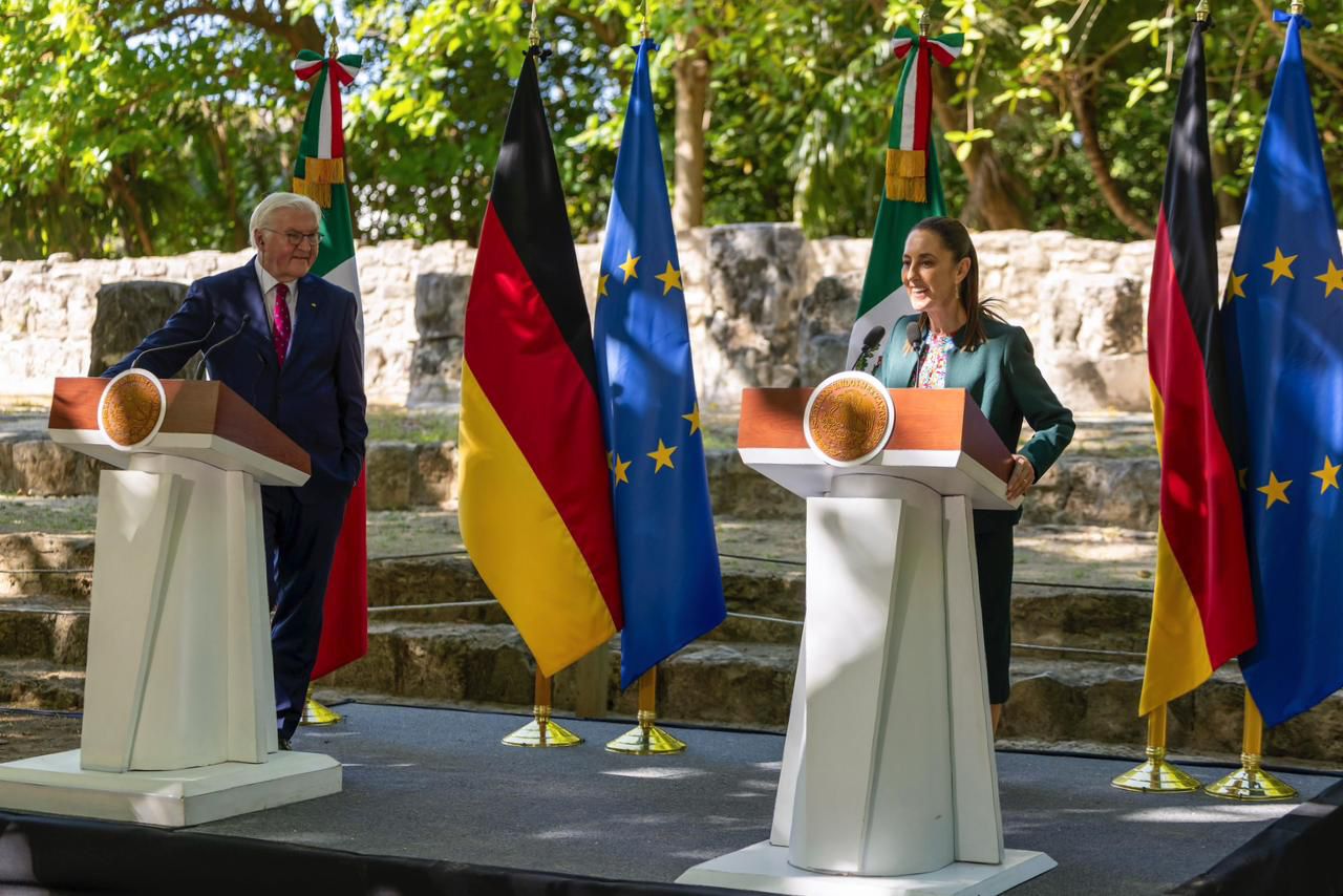 Frank-Walter Steinmeier se reunió con la presidenta mexicana en el Museo Maya de Cancún previo a la inauguración oficial de la 89 Convención Bancaria, que también se lleva a cabo en esta ciudad. Allí ambos mandatarios atendieron al protocolo de recepción, en el cual se tocaron los himnos nacionales y se tomó la fotografía oficial. Posteriormente sostuvieron un encuentro con sus comitivas.