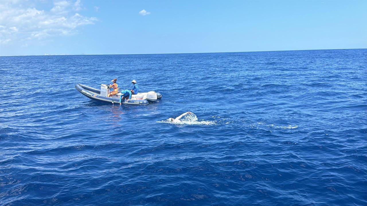 Con este cruce, David Olvera estableció un nuevo récord nacional de 85 kilómetros en un tiempo de 16 horas y 48 minutos de nado ininterrumpido.