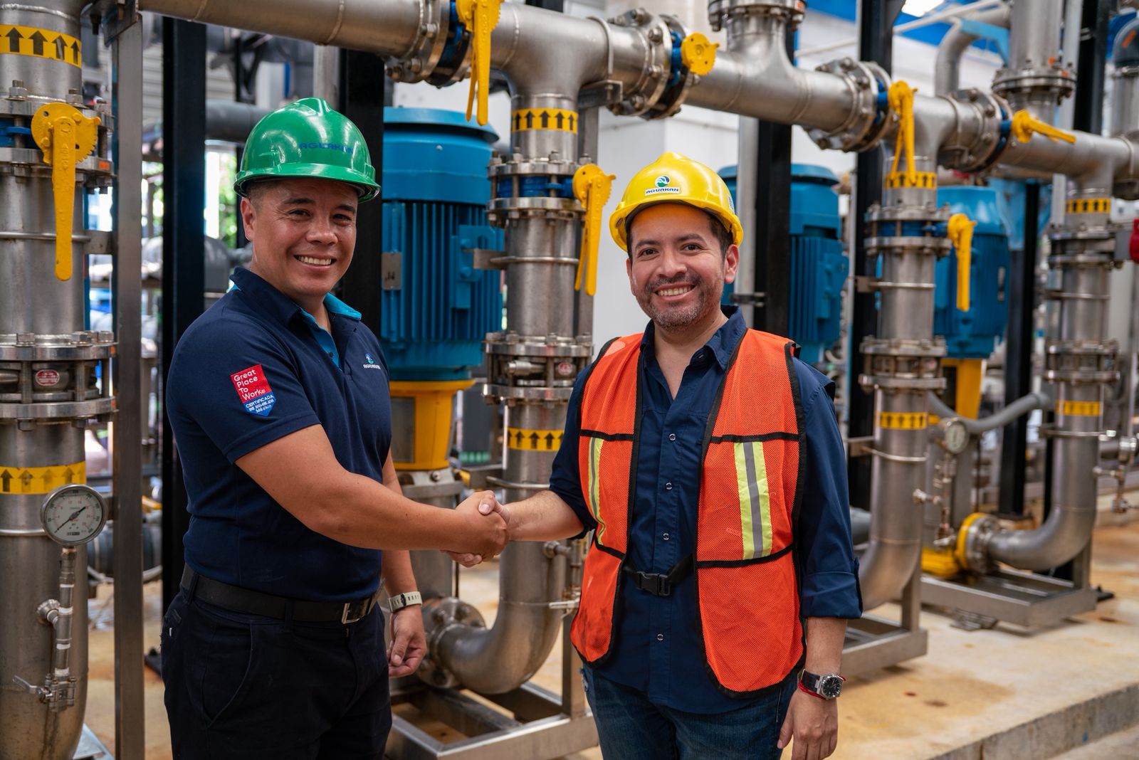 Durante la visita, el presidente de Canacintra Playa del Carmen, José Luis Acosta Quián, junto con sus agremiados, conocieron de primera mano la operación de esta infraestructura, que es la tercera planta desaladora de Aguakan en el municipio de Playa del Carmen y la primera en la localidad de Puerto Aventuras. La instalación cuenta con una capacidad de producción de hasta 50 litros por segundo (lps), lo que contribuye de manera significativa al fortalecimiento del suministro de agua potable en la zona.