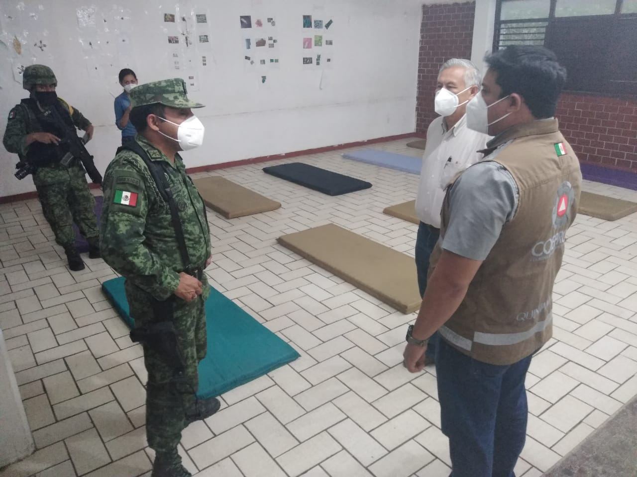 En Puerto Morelos inició la desinfección de los refugios anticiclónicos, que están listos para abrir sus puertas el sábado; estos son el Colegio de Bachilleres, la primaria Benjamín Sabido Rosado y la telesecundaria Ramón Bravo Prieto, en la cabecera municipal; el Cecyte, la Universidad Yucatán Península Misión y el templo Alfa y Omega, en la delegación de Leona Vicario, y las escuelas del Conafe en las comunidades de Delirios y Central Vallarta.
