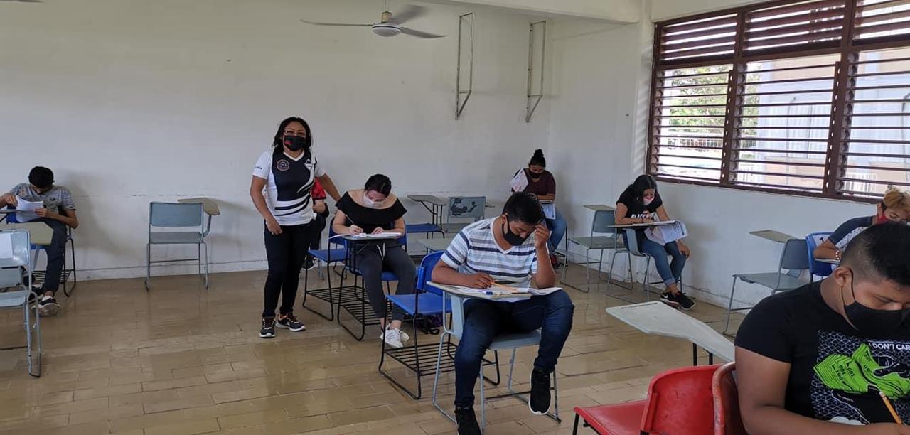 A las afueras de las escuelas fue posible ver largas filas de jóvenes con cubrebocas, manteniendo la sana distancia, listos para ingresar a las aulas. En la preparatoria estatal Eva Sámano de López Mateos, ubicada en Chetumal, se hicieron pintas en las banquetas para señalizar los espacios que deben ocupar los aspirantes; al interior de las aulas también se tuvo un acceso controlado.