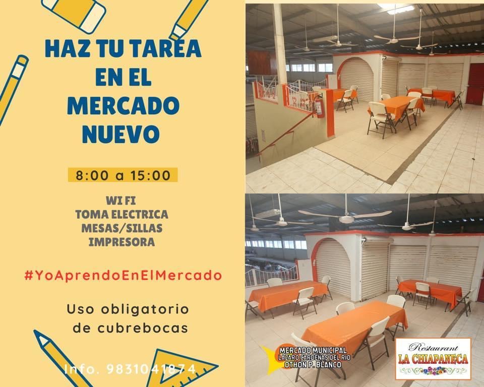 A partir del lunes 14 de septiembre el espacio concesionado al restaurante La Chiapaneca, que se encuentra en la parte superior del mercado Lázaro Cárdenas, en la capital quintanarroense, será un área disponible para estudiantes de todos los niveles de 8 a 15 horas, de lunes a viernes.