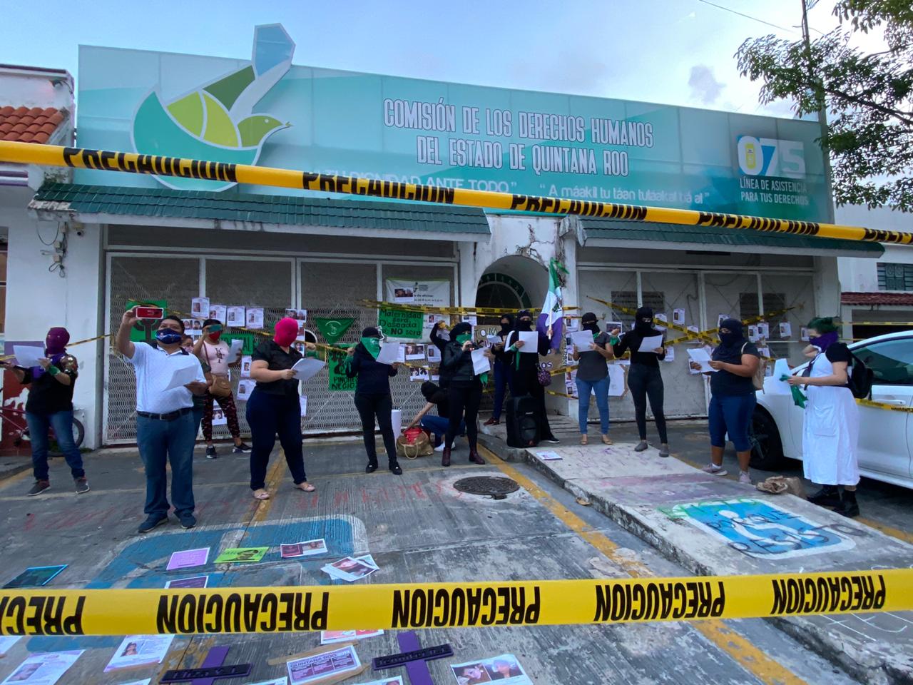 En Chetumal, activistas de colectivos feministas tomaron simbólicamente las oficinas de la Comisión de los Derechos Humanos del Estado de Quintana Roo (Cdheqroo) como parte de una protesta pacífica en contra de la violencia de género.
