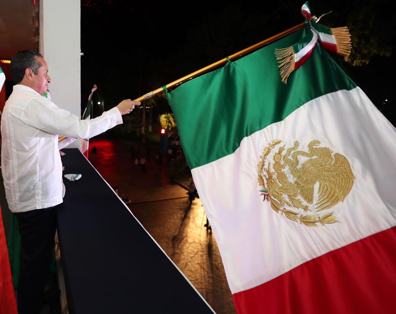 Tras guardar un minuto de silencio en memoria de las víctimas de la pandemia de COVID-19, el gobernador expresó: “Mexicanas, mexicanos, quintanarroenses, viva la independencia nacional, vivan los héroes que nos dieron patria, viva Miguel Hidalgo, viva José María Morelos, viva Vicente Guerrero, viva Nicolás Bravo, viva Ignacio Allende, viva Mariano Matamoros, viva Josefa Ortiz de Domínguez, viva Leona Vicario, Viva Andrés Quintana Roo, viva el personal de la salud, vivan los soldados, marinos, policías, guardias nacionales y brigadistas. ¡Viva Quintana Roo! ¡Viva México!”.