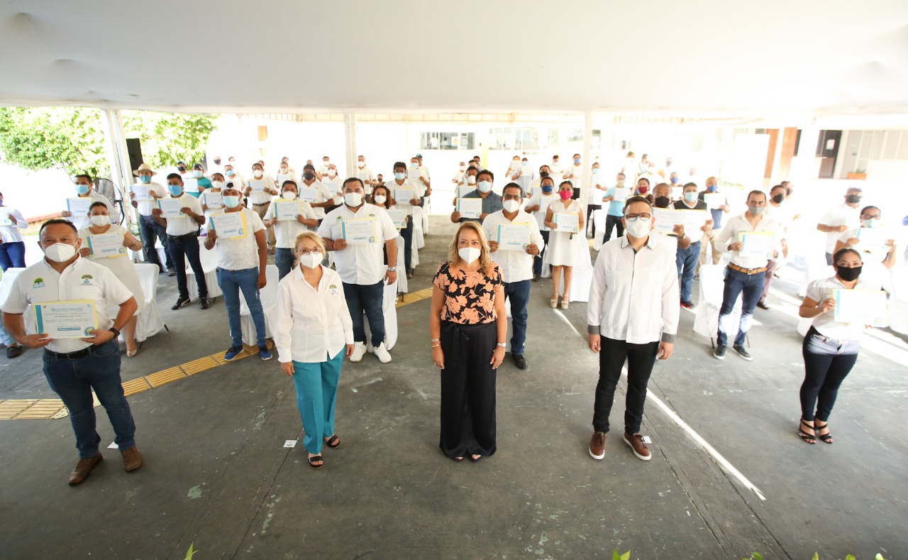 La presidente del Sistema Estatal DIF Quintana Roo, Gabriela Rejón de Joaquín, entregó reconocimientos a 134 trabajadores del organismo que se sumaron a la estrategia de gorras y chalecos amarillos del gobierno del estado, apoyando durante la pandemia del COVID-19 en el armado de dotaciones alimentarias y en la entrega de estas -casa por casa- en los once municipios. Enfatizó que sus acciones contribuyeron de manera importante a mejorar la calidad de vida de miles de familias quintanarroenses.