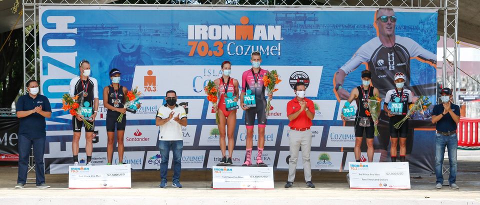Holly Lawrence y Sam Long fueron los ganadores de la novena edición del Ironman 70.3 celebrado en Cozumel el domingo, evento realizado con estrictas medidas sanitarias, como la constante desinfección de espacios y restricción de acceso al público.