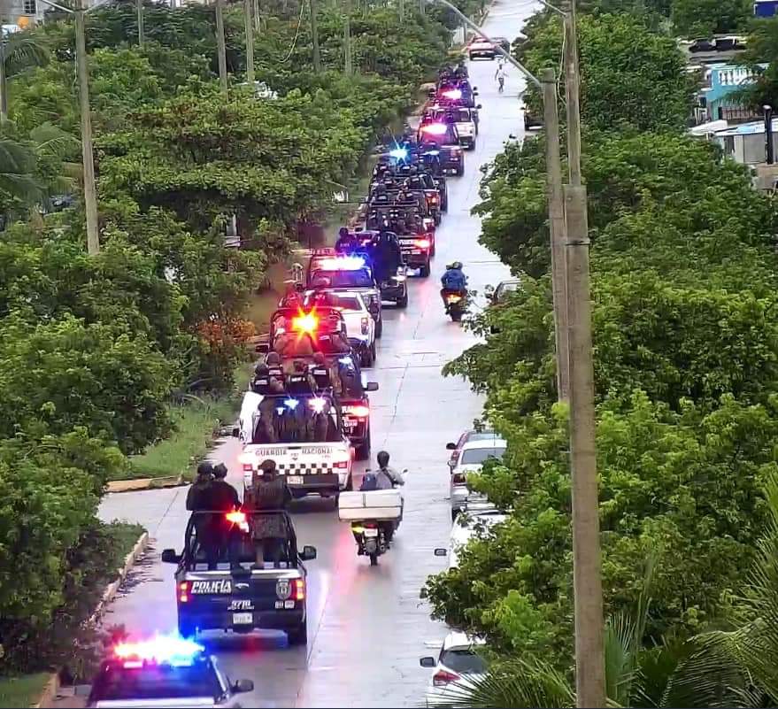 Elementos de la Guardia Nacional, Policía Ministerial y Policía Quintana Roo patrullan la zona norte de Quintana Roo previo a la llegada del huracán Delta.
