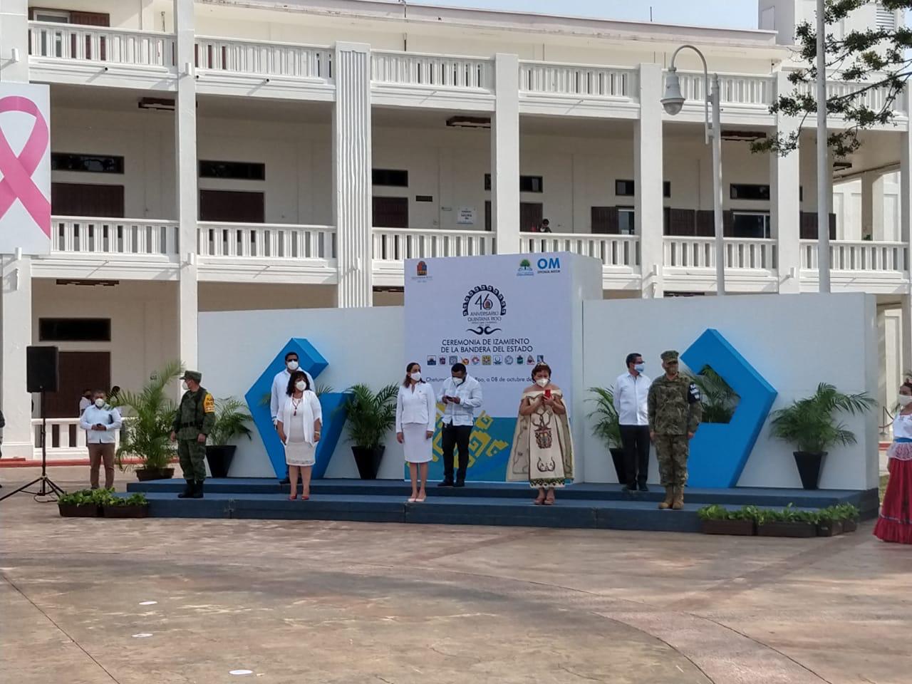 Tanto el poder Ejecutivo como el Legislativo de Quintana Roo limitaron este año sus festejos de aniversario debido al paso del huracán Delta. La celebración se redujo a una ceremonia de izamiento de la bandera que encabezó la secretaria de Educación, Ana Isabel Vásquez Jiménez, en la Explanada de la Bandera de Chetumal.