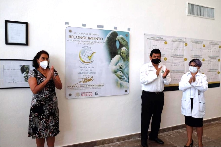 La Oficina de Representación Quintana Roo del Instituto Mexicano del Seguro Social (IMSS) reconoció a todo el personal del Hospital General de Zona (HGZ) Número 18 en Playa del Carmen por su participación en la certificación por parte del Consejo de Salubridad General como hospital seguro.