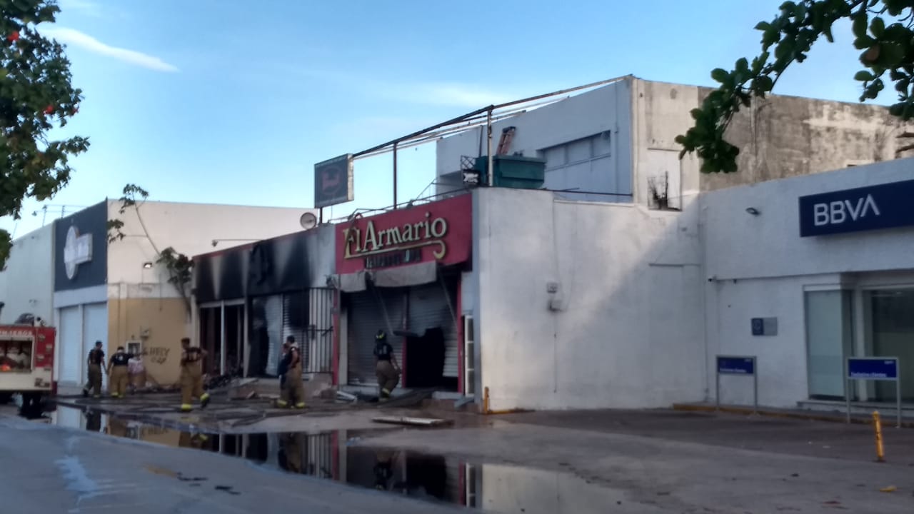 Bomberos del municipio de Solidaridad combaten un incendio que afectó dos locales comerciales de la céntrica avenida Juárez, entre 30 y 25, en Playa del Carmen. El reporte de Protección Civil municipal indica que el siniestro comenzó la madrugada de este viernes en Waldo's Moda y se extendió a El Armario.