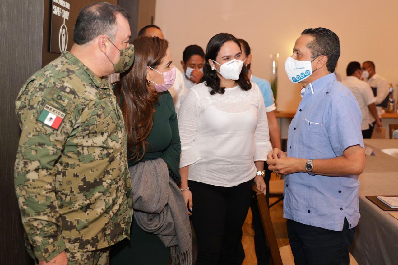 A la reunión informativa del balance de la estrategia 2020 acudieron los presidentes municipales Mara Lezama, de Benito Juárez; Laura Fernández, de Puerto Morelos; Juan Carrillo, de Isla Mujeres y Otoniel Segovia Martínez, de Othón P. Blanco, así como la secretaria de Finanzas y Planeación, Yohanet Torres; el secretario de Ecología y Medio Ambiente, Efraín Villanueva Arcos y tesoreros de los municipios.