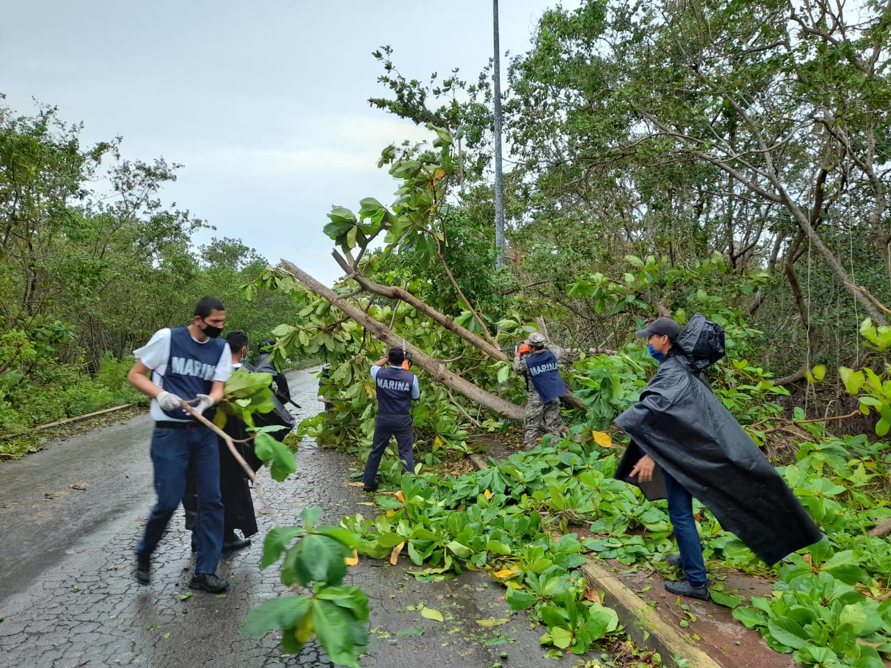 La Secretaría de Marina informó en un comunicado que desplegó mil 971 elementos entre almirantes, capitanes, oficiales, clases y marinería; 46 vehículos; cuatro unidades aeronavales; y ocho unidades de superficie, para realizar acciones de apoyo, como levantamiento y podado de palmeras, desazolve de alcantarillado, remoción de árboles caídos, entre otras.