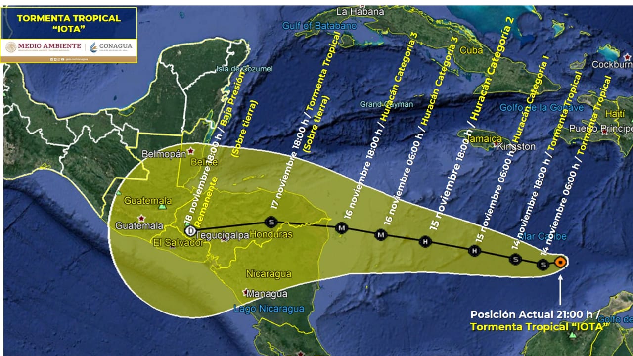Si mantiene su rumbo el nuevo ciclón tocará tierra cerca del Cabo Gracias a Dios, entre Honduras y Nicaragua, al igual que Eta, que sembró muerte y destrucción desde Guatemala hasta Panamá.