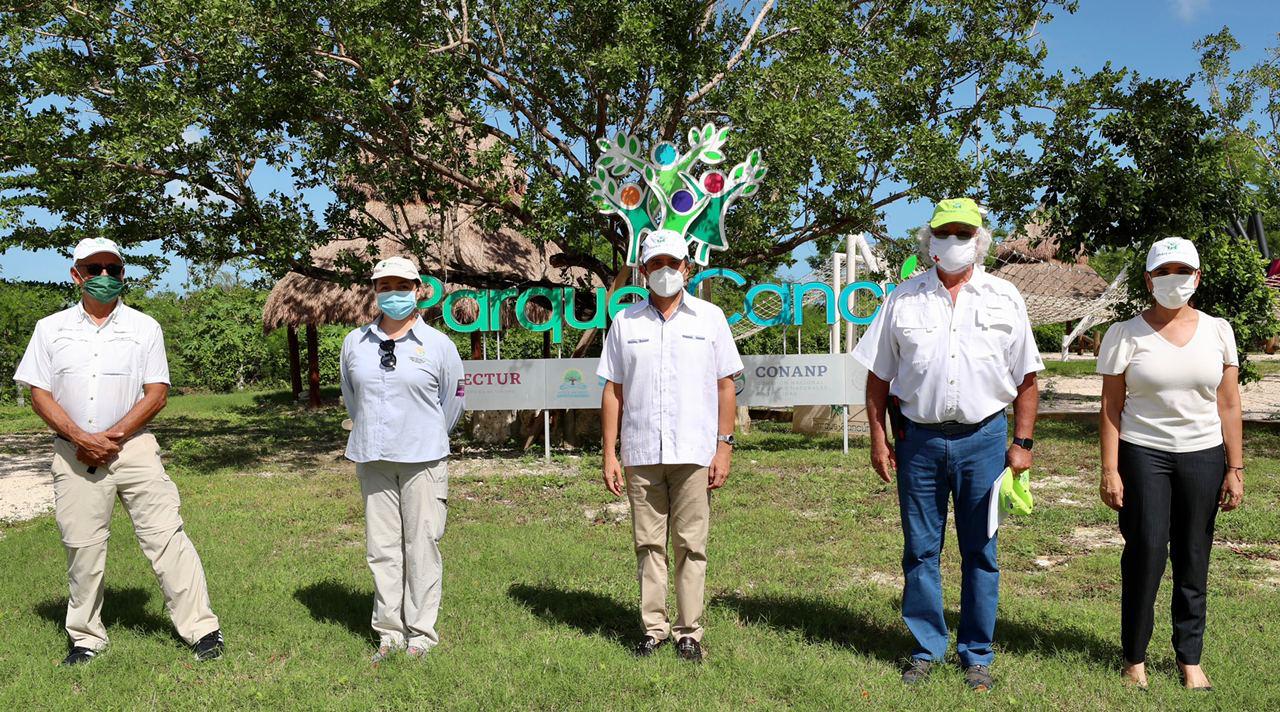 Estuvo acompañado por representantes del patronato del parque, la secretaria de Turismo, Marisol Vanegas Pérez y la presidente municipal de Benito Juárez, Mara Lezama.