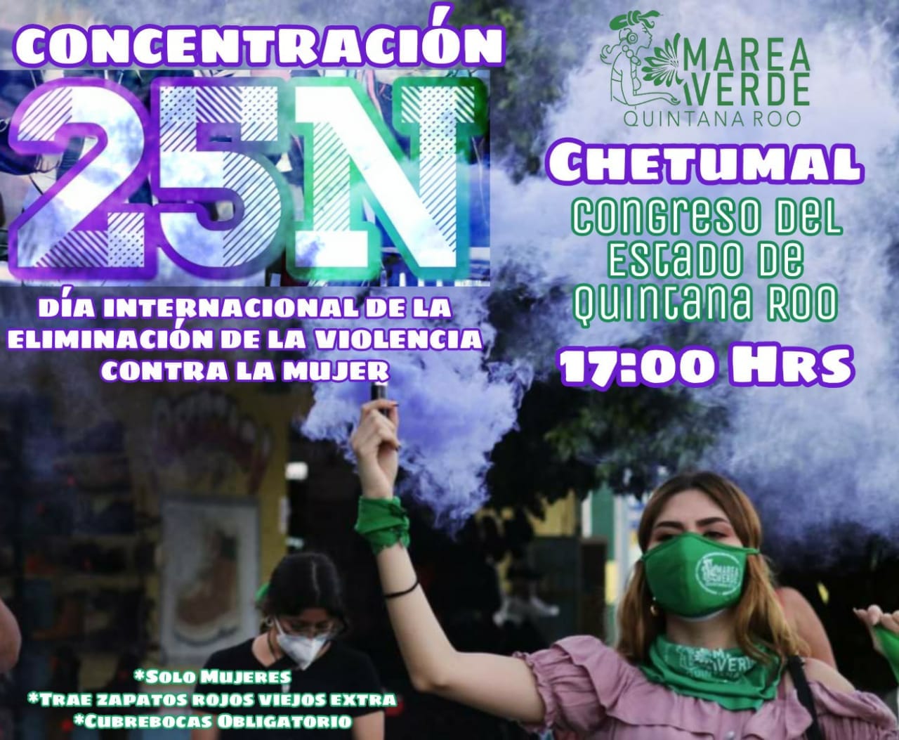 Los diversos colectivos feministas de la entidad y la Comisión de Derechos Humanos del estado de Quintana Roo organizan las movilizaciones, virtuales y presenciales, que llevarán a cabo este 25 de noviembre, día que se conmemora el Día Internacional de la Eliminación de la Violencia contra la Mujer.