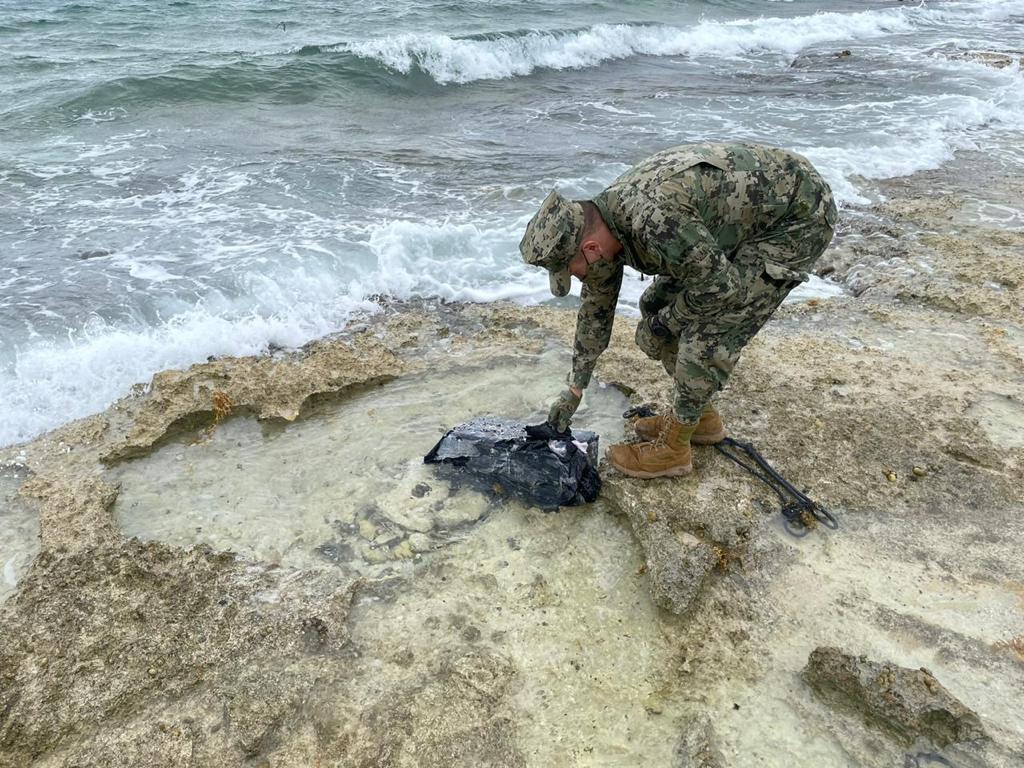 Personal adscrito al Sector Naval de Cozumel aseguró durante un recorrido de vigilancia sobre línea de costa un envoltorio que contenía varios paquetes con droga.