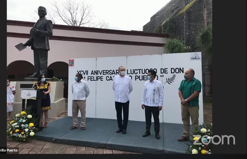 El ponente, que fue enlazado a través de la plataforma virtual Zoom tras realizarse una ceremonia cívica encabezada por el alcalde de dicho municipio en Quintana Roo, José Esquivel Vargas, habló del contexto histórico que dio lugar a la lucha contra las desigualdades, en donde surge Felipe Carrillo Puerto.