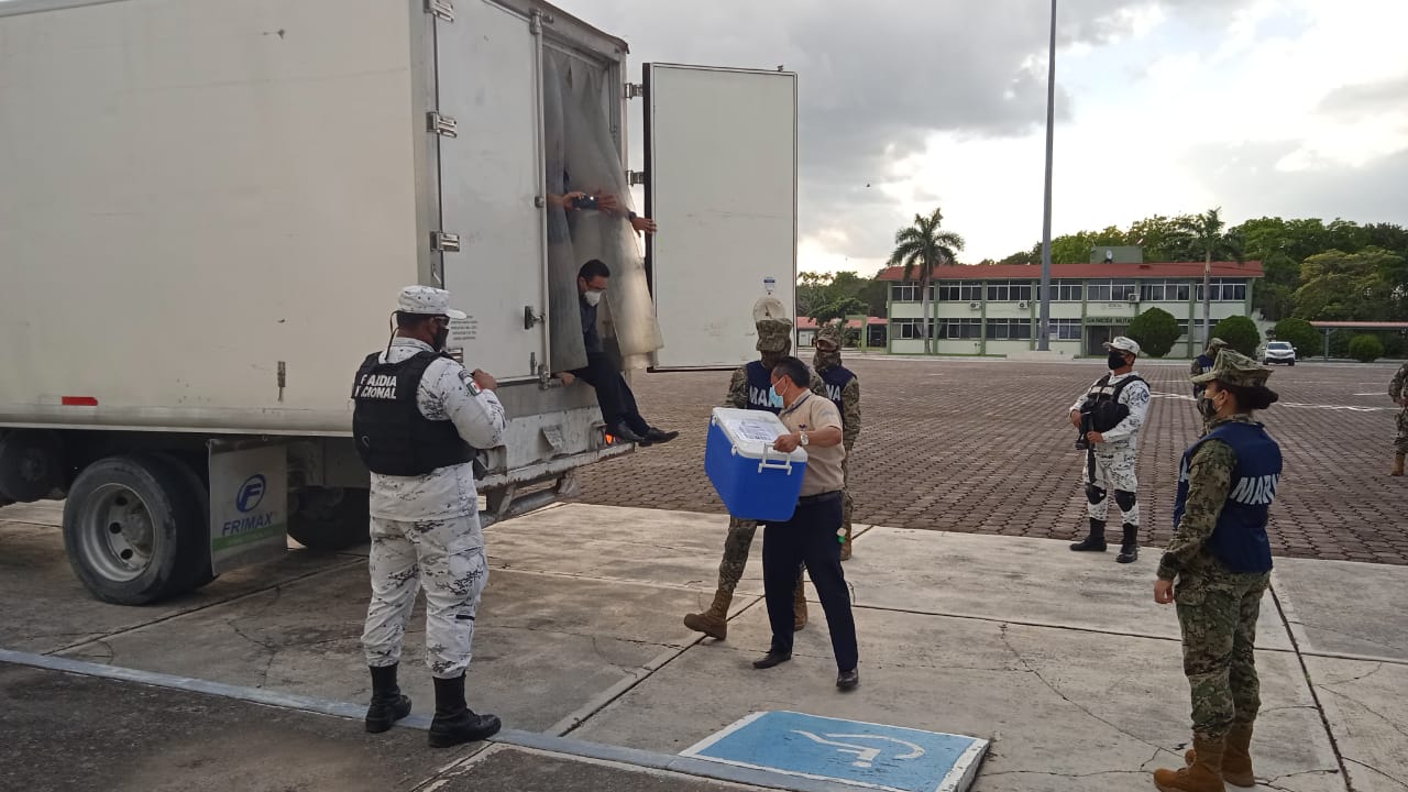 A las 17:10 horas de este miércoles arribó al hangar de la Fuerza Aérea Mexicana en el Aeropuerto Internacional de Chetumal la aeronave con matrícula 3401, con un cargamento de 455 dosis de vacunas que serán distribuidas en hospitales de la zona sur. Antes hicieron lo propio en el aeropuerto de Cancún, en donde se entregaron 520 dosis, es decir, un total de 975 dosis.