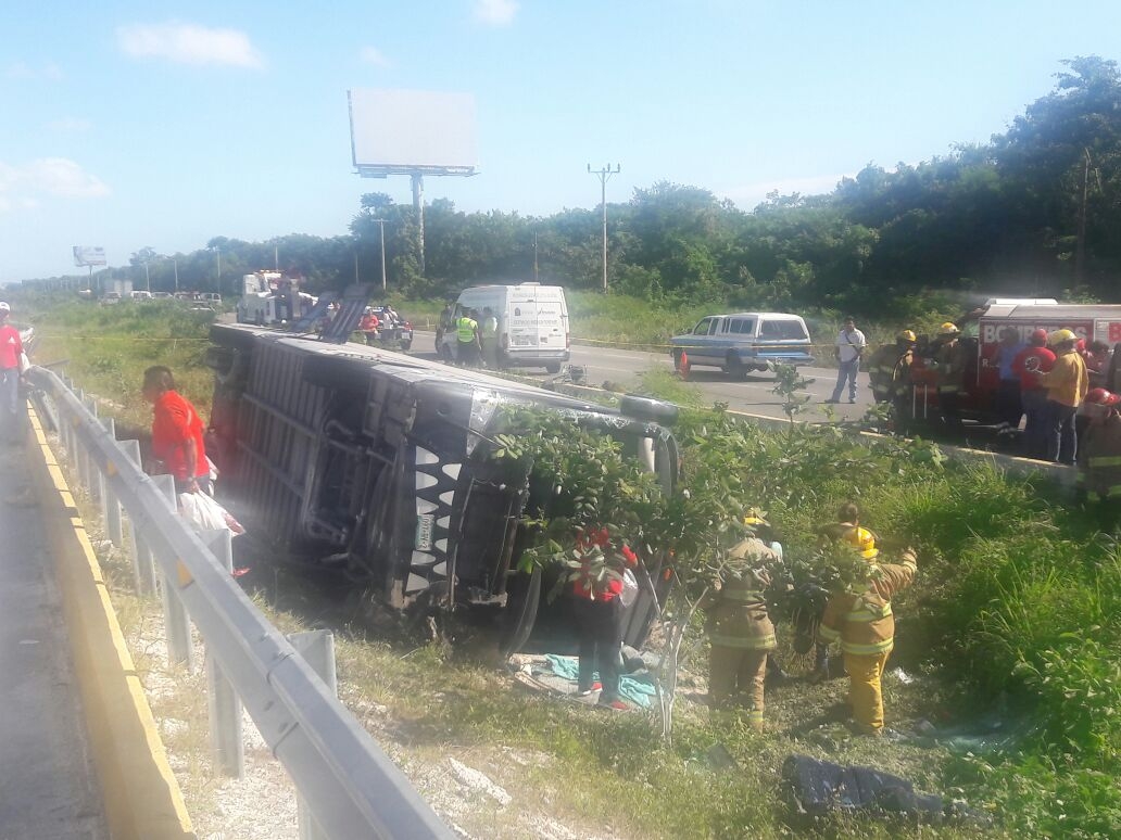 Un autobús procedente de Tabasco volcó ayer en el tramo Felipe Carrillo Puerto, de la carretera a Tulum, al parecer a causa de que el chofer se quedó dormido, provocando la muerte de cuatro mujeres y un menor, así como 42 lesionados.