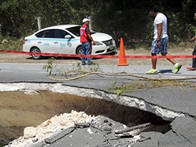 Como se informó ayer en [i]La Jornada Maya[/i], durante los trabajos de remoción, reparación y reconstrucción, quedó al descubierto una caverna con agua debajo de la carretera, lo que podría ser la causa del colapso, junto con las intensas lluvias registradas los últimos días.