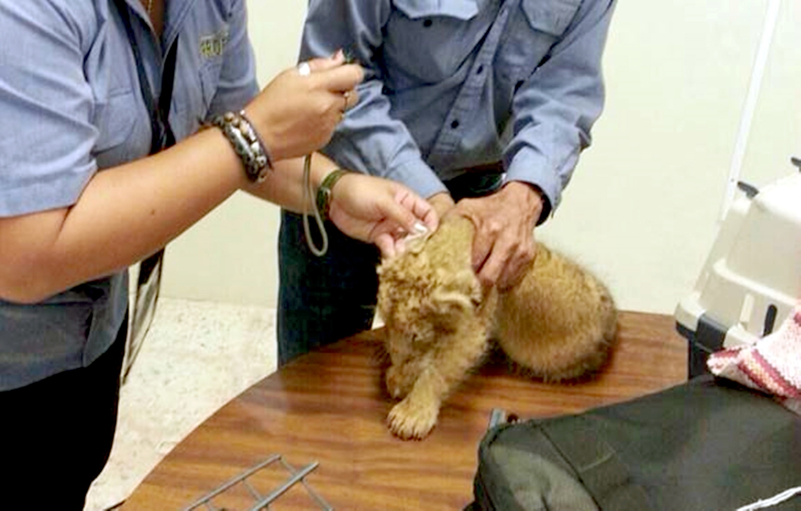 En una primera actuación, los inspectores de la dependencia aseguraron un cachorro de león africano ([i]Panthera leo[/i]) macho de aproximadamente tres meses, en el Centro Artesanal Tulum, en el municipio del mismo nombre (135 kilómetros al sur).