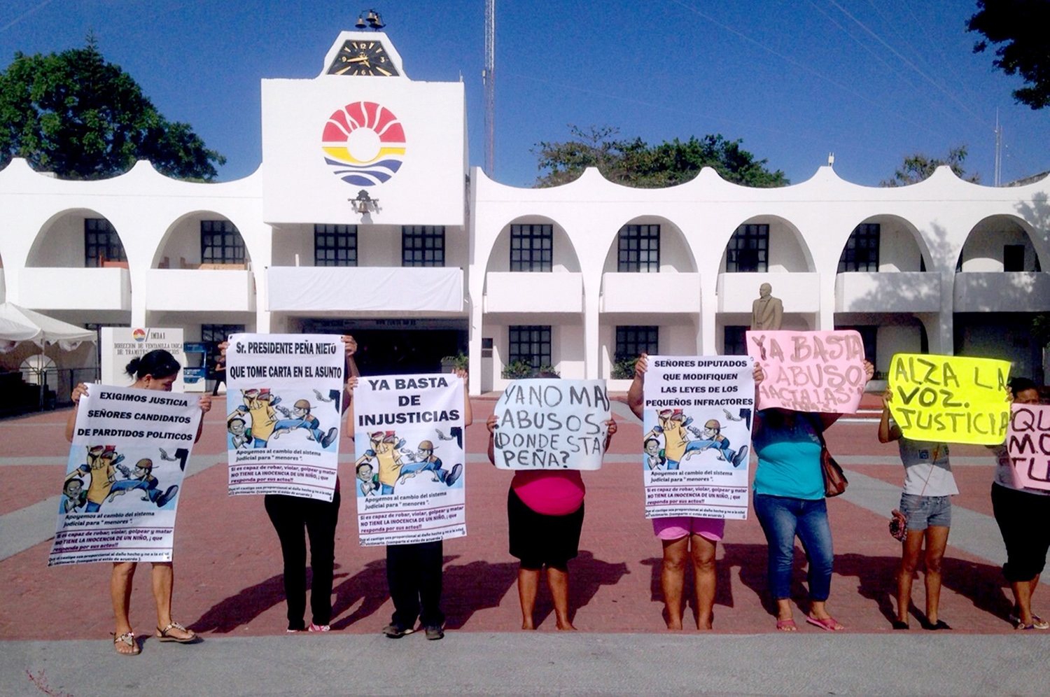 Portando pancartas con leyendas como “¡Basta de abusos a niños!”, y gritos al presidente municipal para que diera la cara por alrededor de 15 minutos, el contingente cercano a 30 personas se manifestó en la plaza de la Reforma, en el palacio municipal.