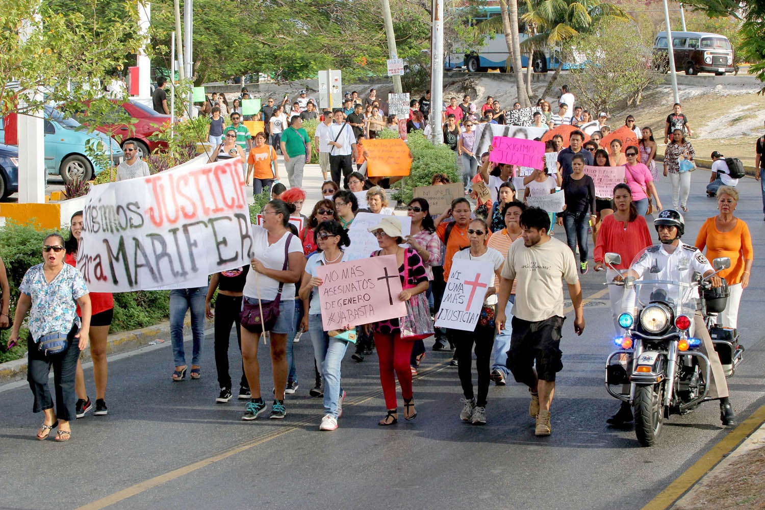 La protesta inició a las 17 horas en Malecón Tajamar –frente a la principal plaza comercial del centro de la ciudad–, y culminó hora y media después frente al palacio municipal donde se desarrollaba uno de los actos por el aniversario de Cancún, y donde los manifestantes por “Marifer”, como era conocido la pequeña, encendieron veladoras.