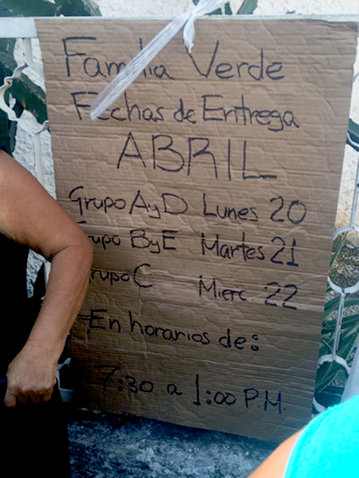 Al igual que hace meses, los verdes continuaron con su programa de trasfondo electorero con la entregar en la bodega ubicada en la avenida José López Portillo, pese a la queja ante la Junta Distrital 03 por parte de representantes del PRD.