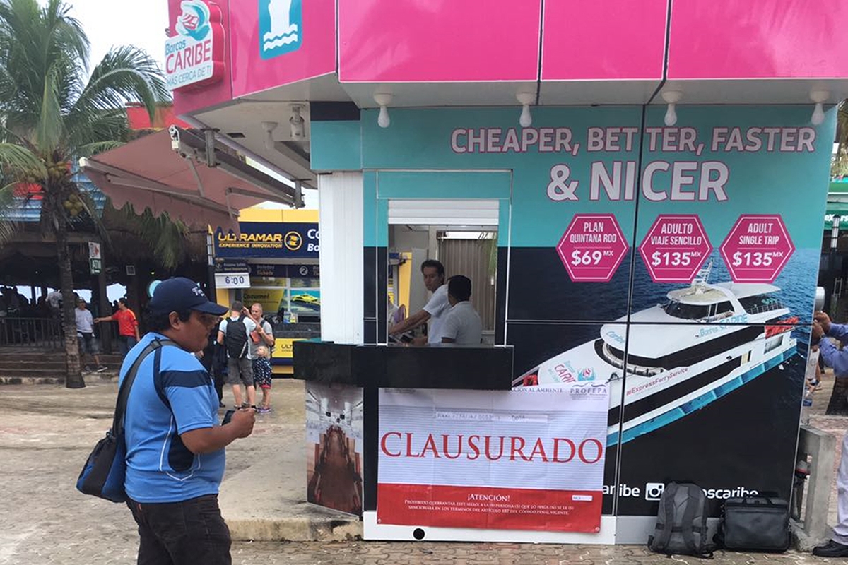 Inspectores de la Procuraduría Federal de Protección al Ambiente (Profepa) clausuraron, por carecer de autorización de impacto ambiental, el módulo de venta de boletos e información turística de la empresa Barcos Caribe, presuntamente propiedad de la familia Borge, en las inmediaciones del muelle de embarque de Playa del Carmen.