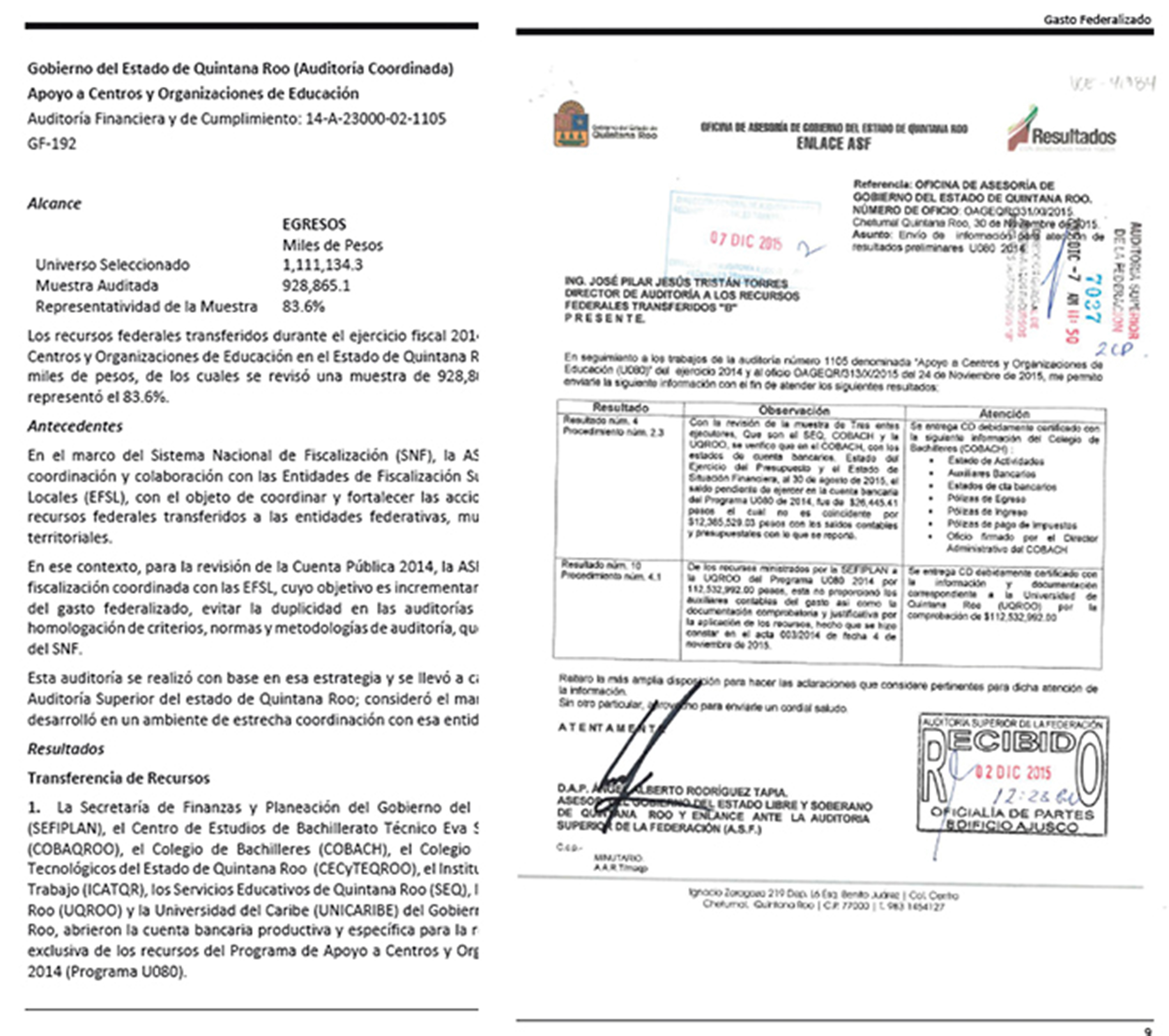 La Auditoría Superior de la Federación (ASF) detectó diversas irregularidades en el manejo de recursos públicos en Quintana Roo, relacionadas con los sistemas educativos durante el ejercicio fiscal 2014.