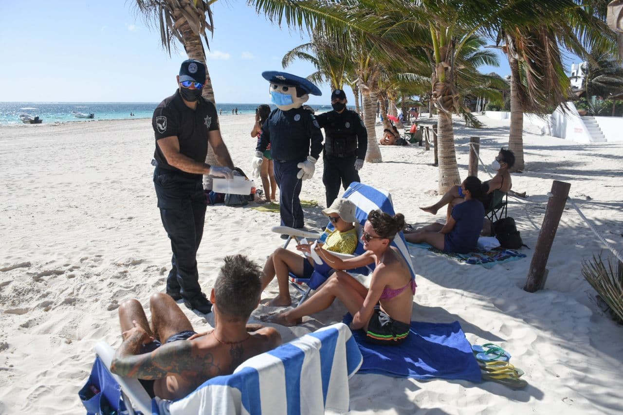En el caso de Puerto Morelos, elementos de la Policía Quintana Roo de Puerto Morelos, que trabaja bajo los lineamientos del Mando Único, llevan a cabo recorridos por la zona de playas, con la participación del personaje “Poli Puerto”, para repartir cubrebocas e insistir en la importancia de su uso, así como mantener todas las medidas de prevención para evitar contagios.