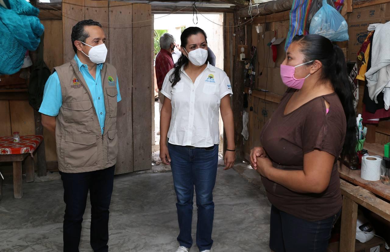 El gobernador Carlos Joaquín, acompañado por el edil carrilloportense, José Esquivel Vargas; la titular de la Sefiplan, Yohanet Torres Muñoz; y la Secretaría de Desarrollo Social (Sedeso) en el estado, Rocío Moreno Mendoza, visitó las viviendas de Teresita de Jesús Martínez May y Jovita Tuz Canul, quienes manifestaron que con estas acciones se mejora la calidad de vida de sus familias.