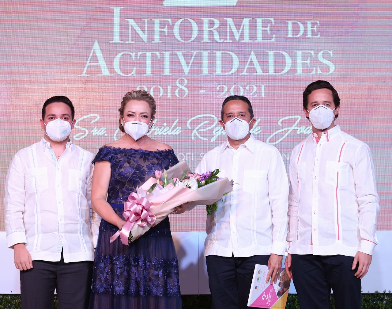 La presidente del Sistema Estatal para el Desarrollo Integral de la Familia (DIF) de Quintana Roo, Gaby Rejón de Joaquín, rindió su Segundo Informe de Actividades, en el que afirmó que la fortaleza de Quintana Roo es la familia y que con esa visión se avanza a paso firme en programas institucionales beneficiando a los sectores más vulnerables.