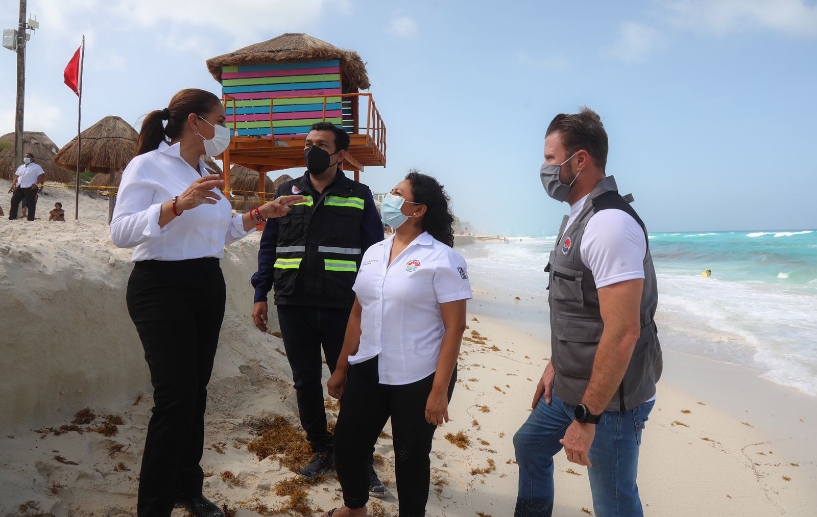 La alcaldesa Mara Lezama realizó un recorrido junto con personal de Zofemat, asegurando que el reciente mal clima fue el causante de la erosión, pero que descartaban daños en las anidaciones de tortuga.