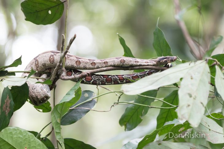 La boa puede llegar a tener varias parejas de apareamiento, dado que la hembra libera feromonas a través de la cloaca para atraer machos.