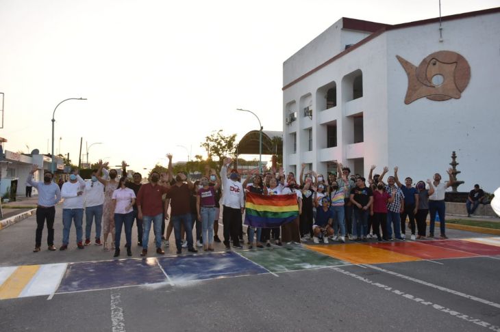 “Estamos visibilizando a una minoría que por mucho tiempo ha sufrido muchísimo rechazo, y muchísimo dolor, y hoy estamos trabajando, regidoras, regidores, síndico, y autoridades para que desde el Ayuntamiento de Othón P. Blanco, aterricemos actividades que representen el respaldo a la lucha de los grupos marginados, vulnerables”, expuso la presidente Yensunni Martínez Hernández, al momento de pintar un paso peatonal con motivo del mes de la lucha por los derechos LGBT+.